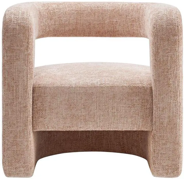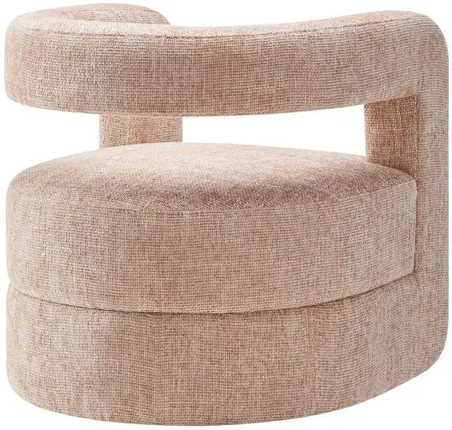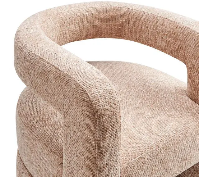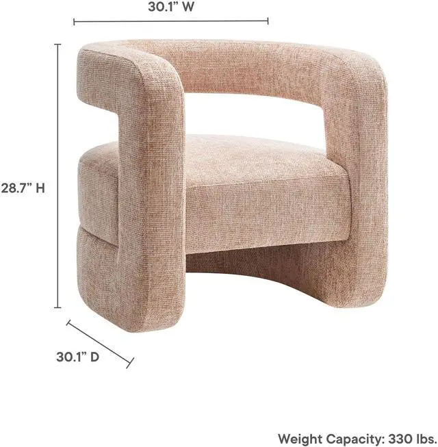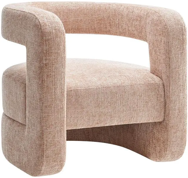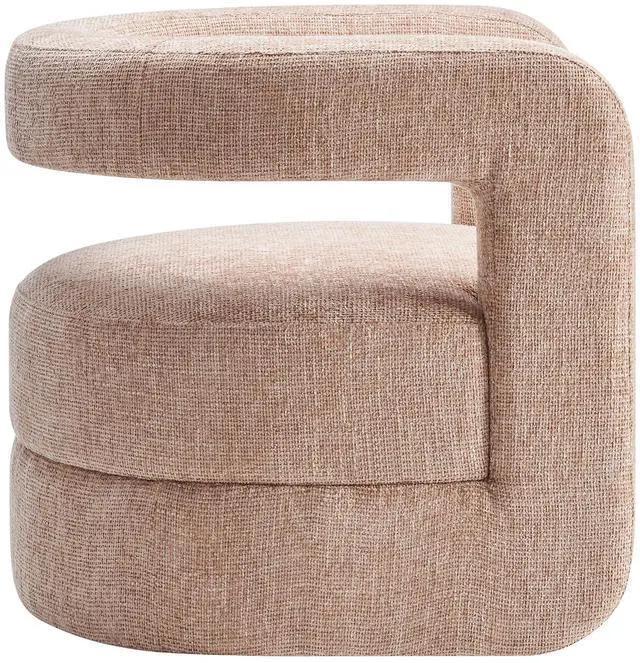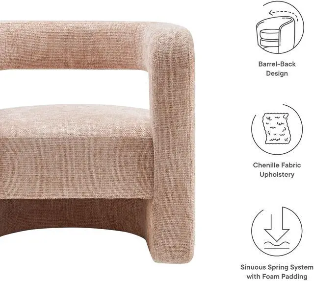 Redefine your decor with the chic and contemporary Jaylin Chenille Accent Chair. Its striking U-shaped frame makes this unique barrel chair an eye-catching addition to any space. The open-back design and thick, curved arms create a distinctive floating appearance that is both contemporary and inviting, while its plush circular seat nestles perfectly within the rounded frame. Padded with dense foam and covered in luxurious chenille fabric, this wide armchair has sinuous spring support, for a durable and cozy seating experience. Featuring non-marking foot pins that protect your floors, this round accent chair arrives fully assembled.