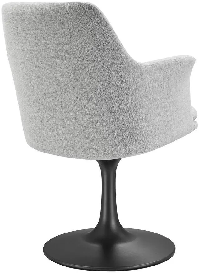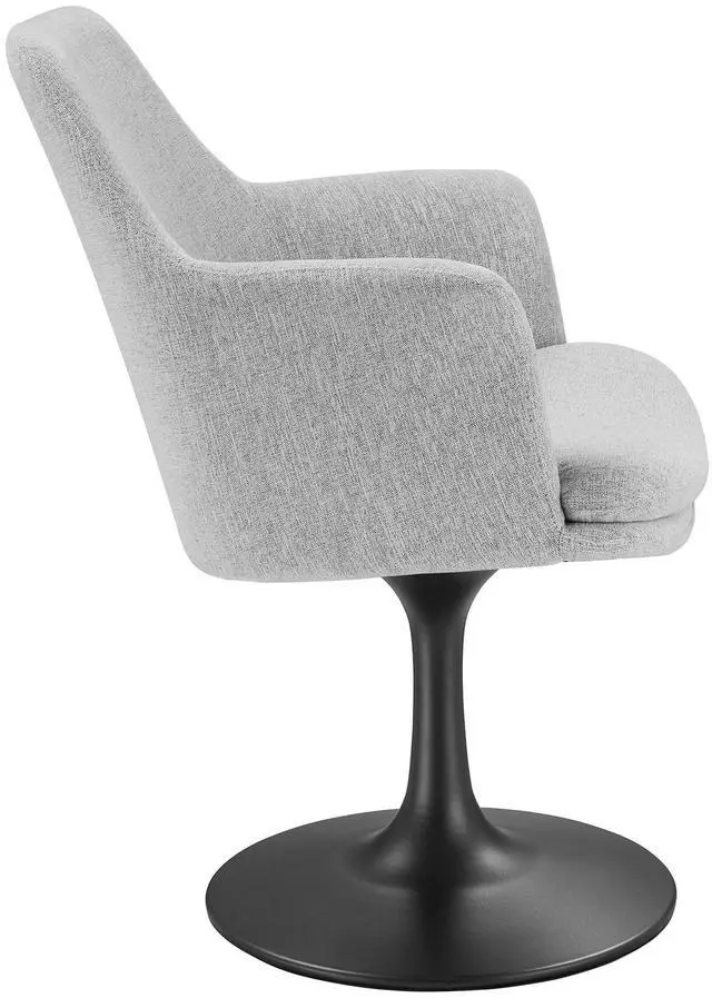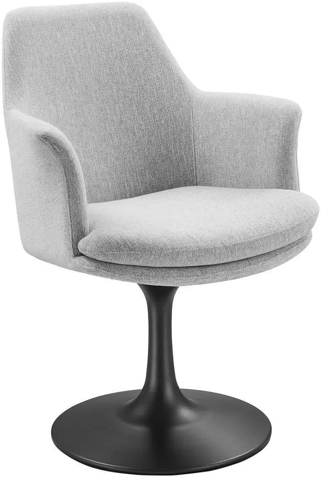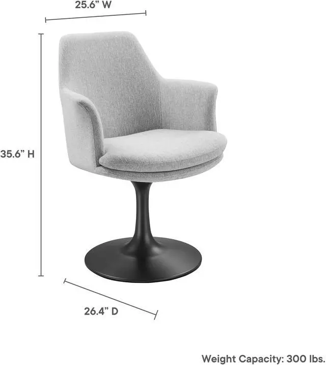 Not only an upholstered swivel dining chair, it also functions beautifully as a desk chair with arms, or even a chic vanity swivel chair. Whether complementing one of the Lippa dining room tables or your existing setup, this upholstered swivel armchair with pedestal base naturally freshens up your space. Assembly Required.