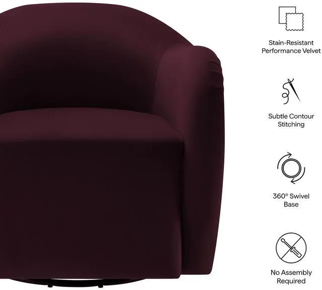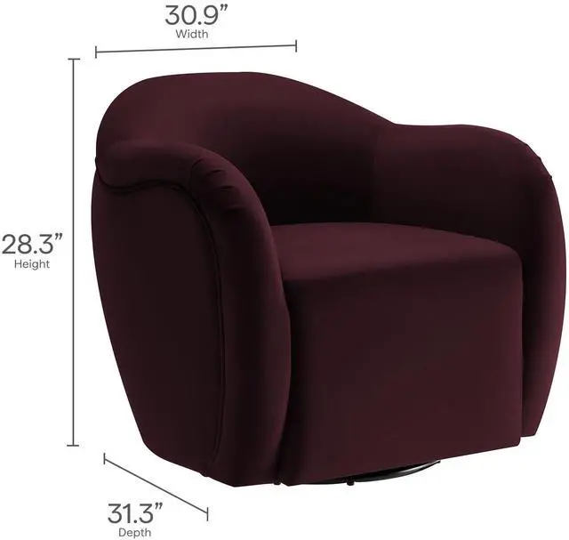 Let the Compose Swivel Accent Chair be your go-to for chic and cozy relaxation. This eye-catching round swivel chair is designed to be the centerpiece of any room, offering a perfect combination of modern aesthetics and cozy seating. Crafted with a mix of high-quality wood materials, the Compose barrel swivel chair is wrapped in stain-resistant performance velvet. Its smooth curves and plush padding create an inviting seating experience, perfect for unwinding after a long day. The Compose round sofa chair features a sturdy steel swivel base, allowing for a full 360-degree rotation.