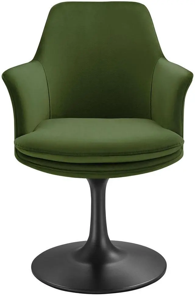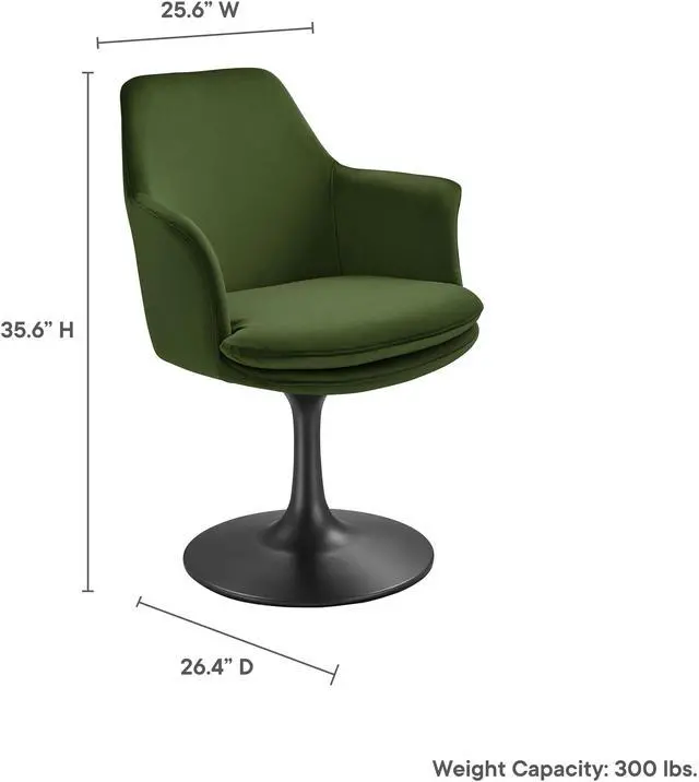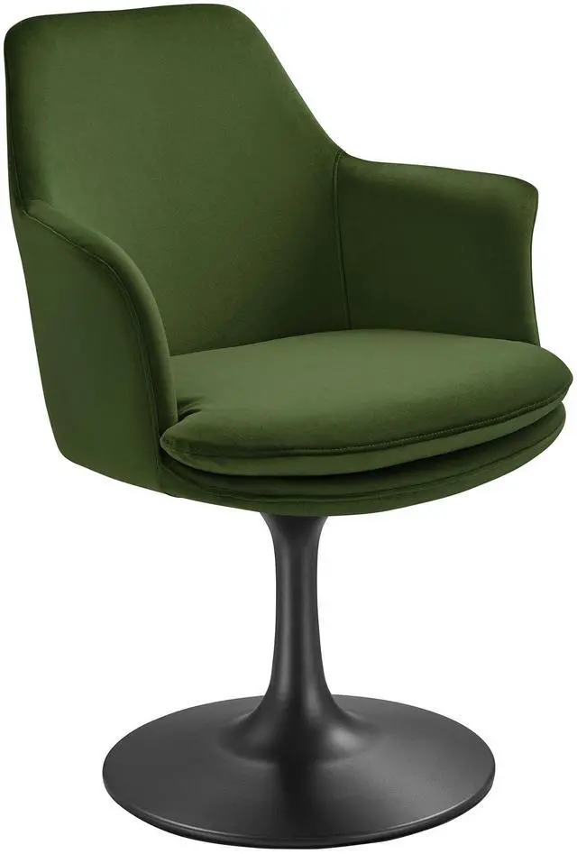 Not only an upholstered swivel dining chair, it also functions beautifully as an velvet office chair with arms, or even a chic velvet vanity chair. Whether complementing one of the Lippa dining room tables or your existing setup, this velvet swivel armchair with pedestal base naturally freshens up your space. Assembly Required.