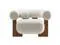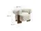 With a nod to retro aesthetics, the Jace Accent Chair stands out with its modern lines and inviting presence. This sofa chair features a curved U-shaped backrest and is supported by three sturdy ash wood legs that feature a rectangular, open-frame that mirrors the chair's chic aesthetic. Upholstered in textured boucle fabric with a tightly looped design that adds depth and visual interest, the Jace Single Sofa Chair complements both vintage and contemporary decor. The generously padded oversized seat of this barrel accent chair provides ultimate comfort, while the included round accent pillow adds an extra touch of style and support.