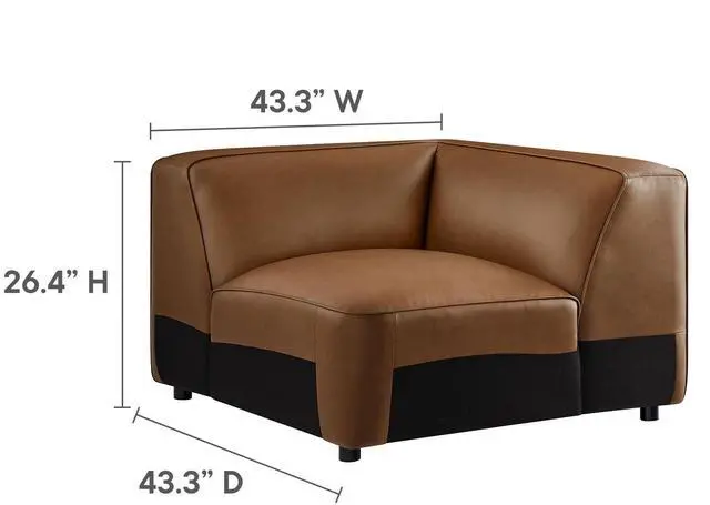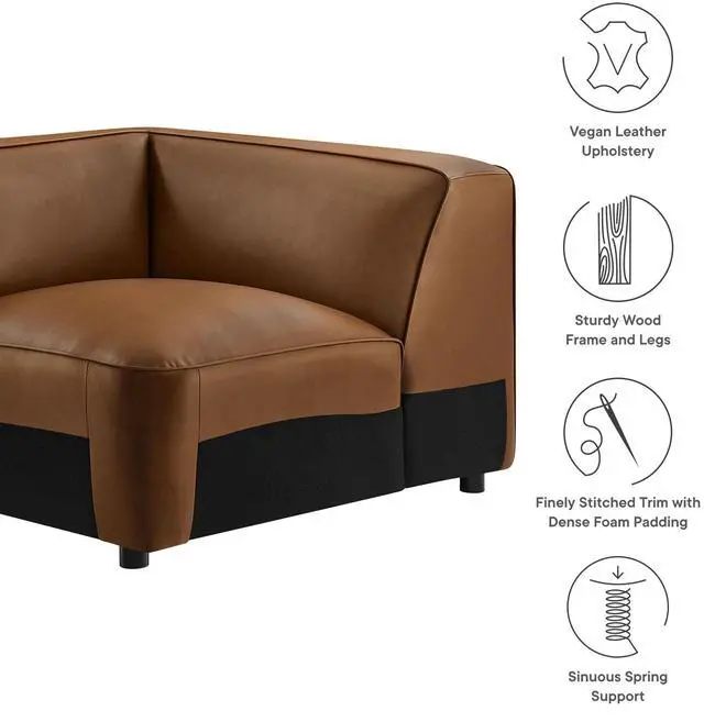 Make your living room feel instantly stylish with the low-key elegance of the Auren Vegan Leather Corner Chair. Part of the Auren Sectional Set, this corner modular chair is wrapped in smooth, high-quality faux leather. Equipped with an alligator clip, this oversized accent chair stays securely in place when connected with other modular pieces. The deep seating invites relaxation, while the low backrest and generously cushioned, armless design create a cozy yet modern aesthetic. Finely stitched trim along the seams adds a tailored finish, while the entire faux leather corner chair is generously padded with dense foam for a soft, supportive feel.