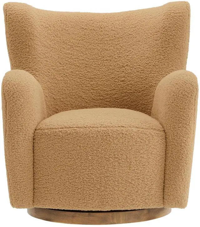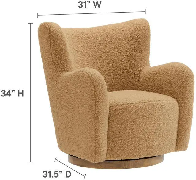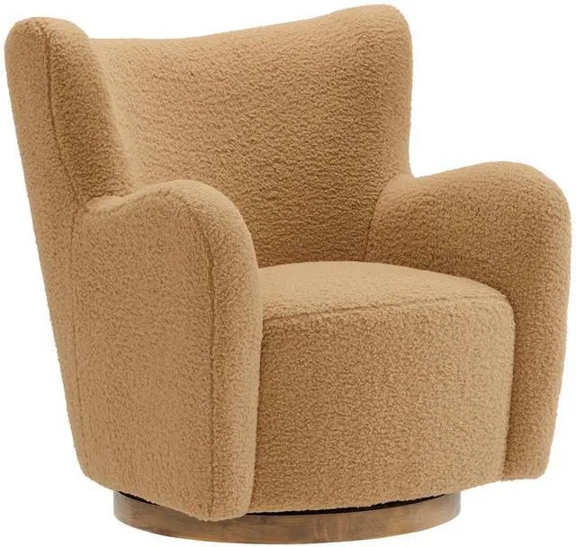 Wrap yourself in the cozy embrace of the Montrose Swivel Wingback Chair, a perfect combination of modern design and plush comfort. Upholstered in soft sherpa teddy fabric, this barrel-style chair invites you to lounge in luxury. Its gently curved silhouette features a classic wingback design, soft padded armrests, and a generously cushioned seat, offering exceptional comfort and support. The accent chair rests on a sturdy wooden swivel base with smooth 360-degree rotation, allowing you to effortlessly turn and move. Perfect for living rooms, bedrooms, or cozy reading nooks, the Montrose Sherpa Chair combines contemporary flair with versatile functionality, making it a statement piece for any space.