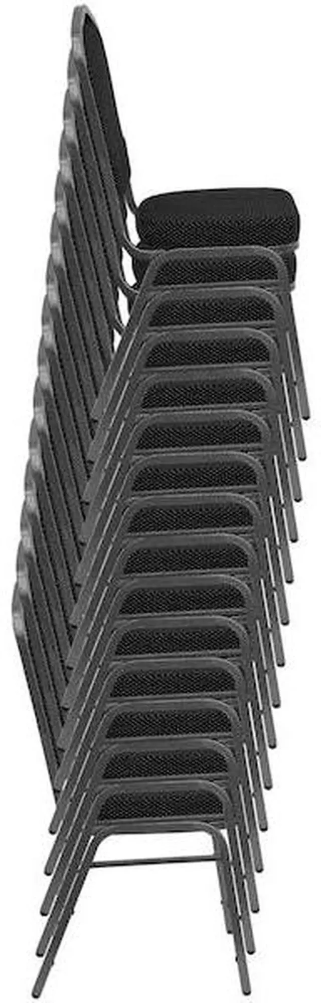 The sturdy frame with gracefully angled legs are made of 16 gauge steel in a lasting powder coated finish. Double support braces reinforce the frame to give it great strength and durability. Bumper guards prevent scratches on the frame when stacked (up to 15 high) and non-marring floor glides protect your floor by sliding smoothly when you need to move the chair. This multi-use stacking upholstered stack chair is an excellent option for churches, banquet halls, training rooms, hotels, convention centers and schools. Add banquet chairs to your home dining table to add a contrasting look to your dining room or kitchen.