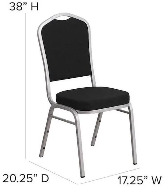 Make an impressive presentation in your banquet hall when clients come to visit your facility with these ballroom chairs. Built for the commercial industry these popular crown back banquet chairs have been tested to hold up to 500 pounds. With a high seating capacity these stack chairs are perfect for the event rental business. This standout hospitality chair can be used as is and still command attention or be dressed up for formal events by placing a chair cover over it. The chair is cushioned with 2.5" thick CAL 117 fire retardant foam and is covered in durable upholstery for high usage.