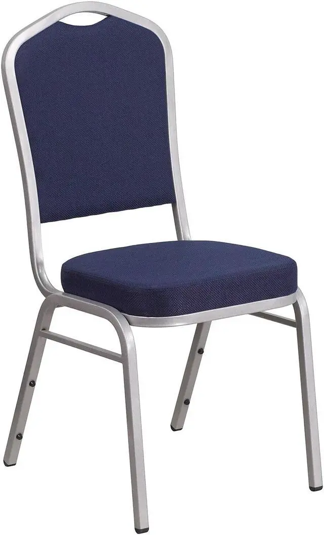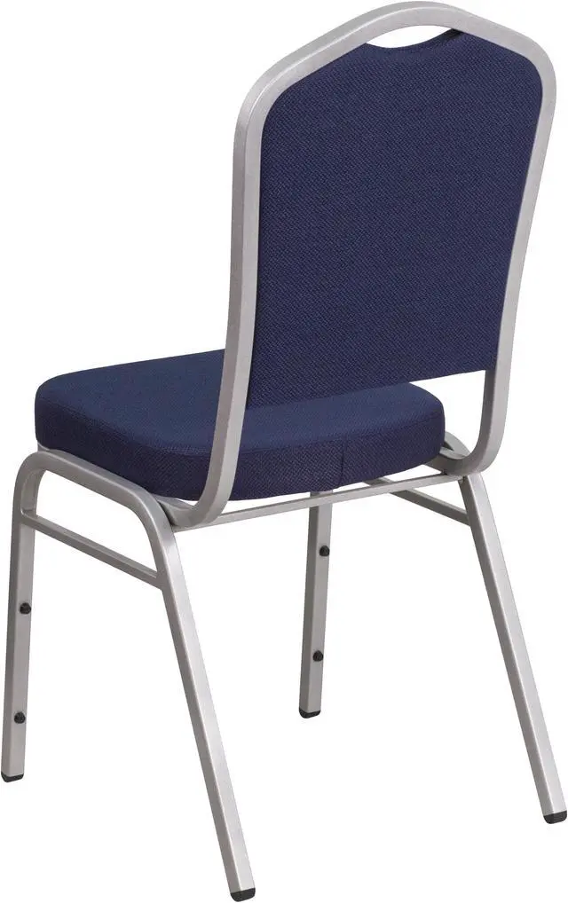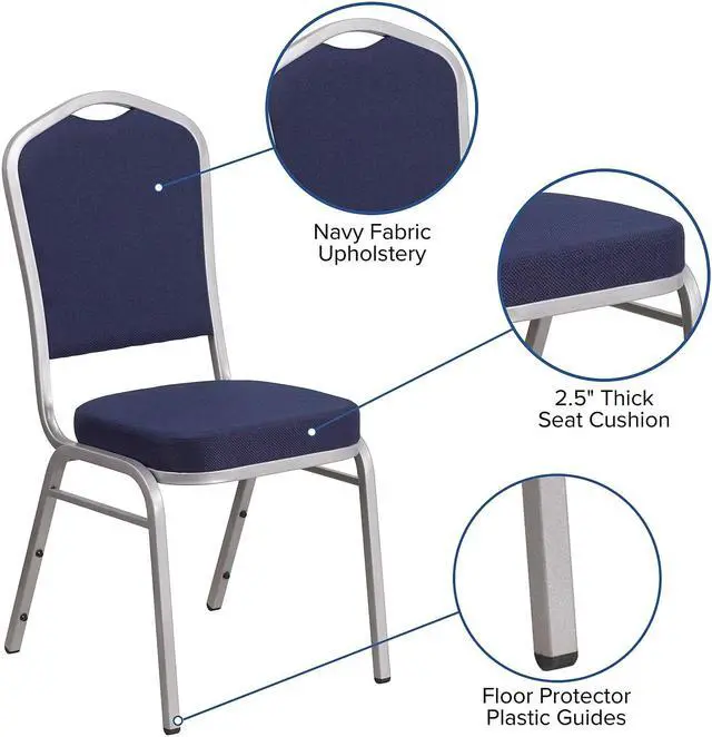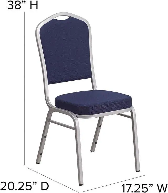 Make an impressive presentation in your banquet hall when clients come to visit your facility with these ballroom chairs. Built for the commercial industry these popular crown back banquet chairs have been tested to hold up to 500 pounds. With a high seating capacity these stack chairs are perfect for the event rental business. This standout hospitality chair can be used as is and still command attention or be dressed up for formal events by placing a chair cover over it. The chair is cushioned with 2.5" thick CAL 117 fire retardant foam and is covered in durable upholstery for high usage.
