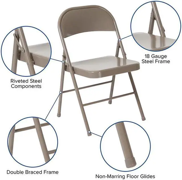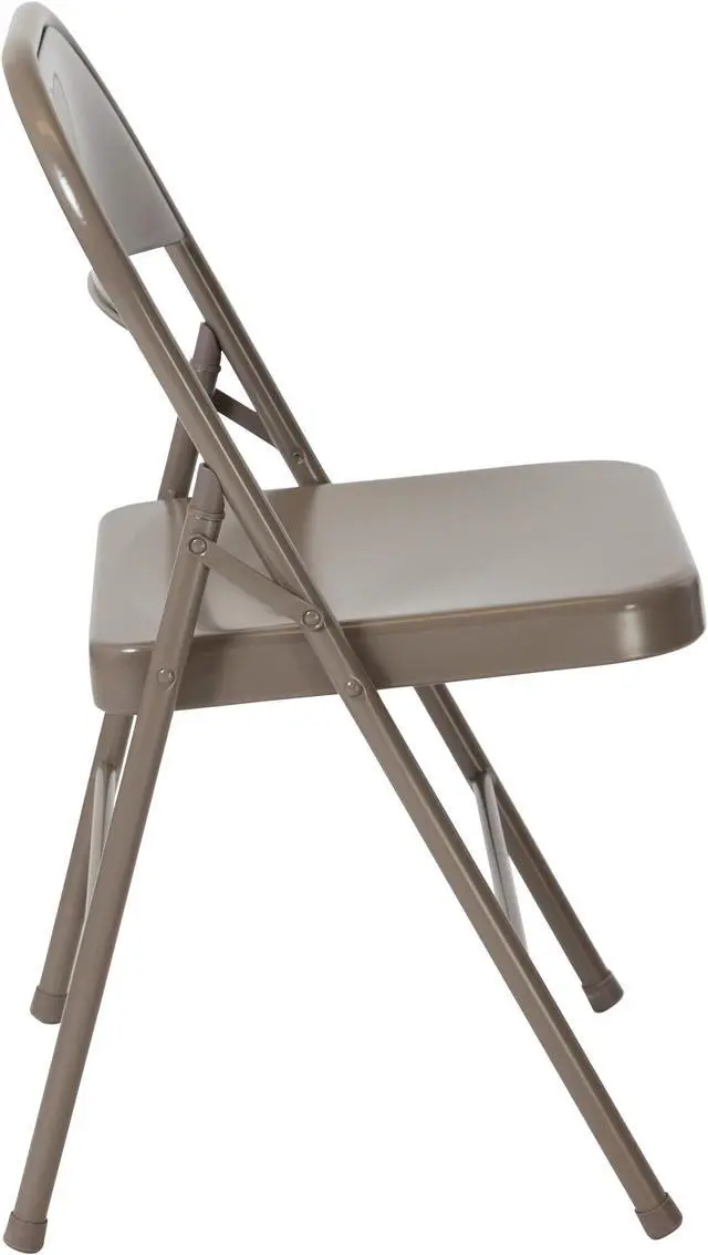 Easily switch from just the family to a twenty person marathon board game night. This durably constructed Metal Folding Chair is a convenient option for everyday use or extra seating in a residential or commercial setting. It features a premium 18 gauge, steel frame. The legs are double braced, with an integrated footrest. Though lightweight and easy to fold, transport and store, it's sturdy enough to hold up to 225 pounds. Non-marring floor glides on the legs protect your floors from scuffs and scrapes by sliding smoothly when you need to move the chair.
