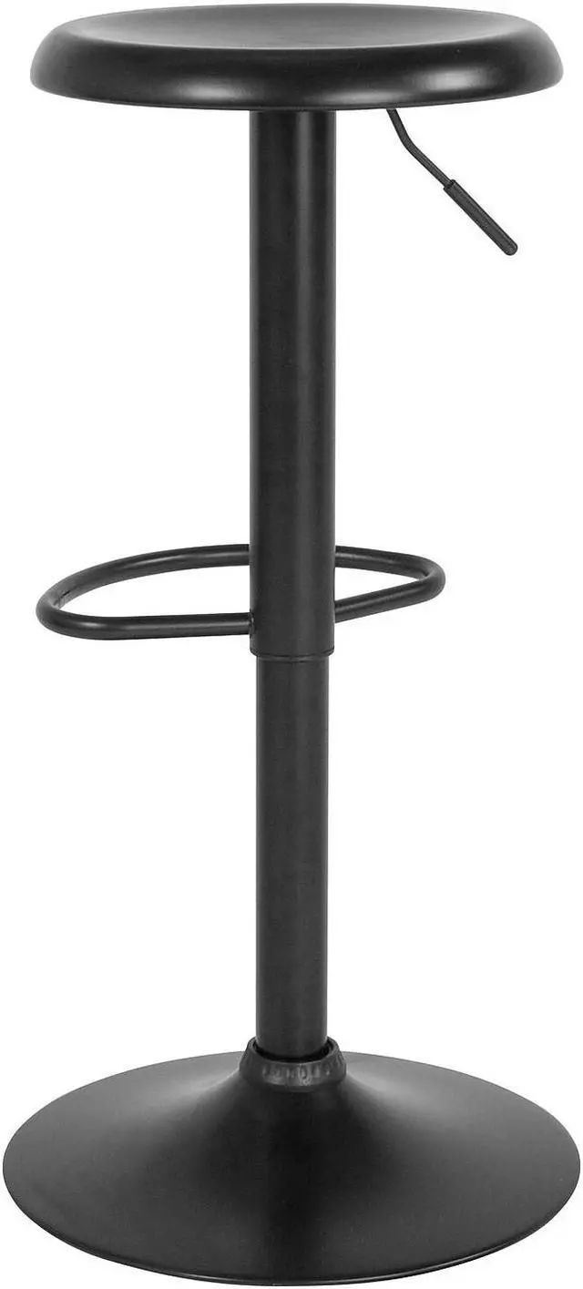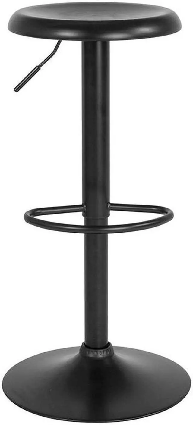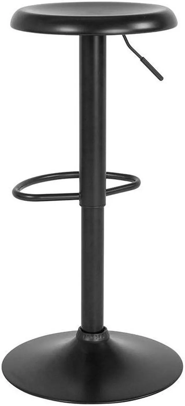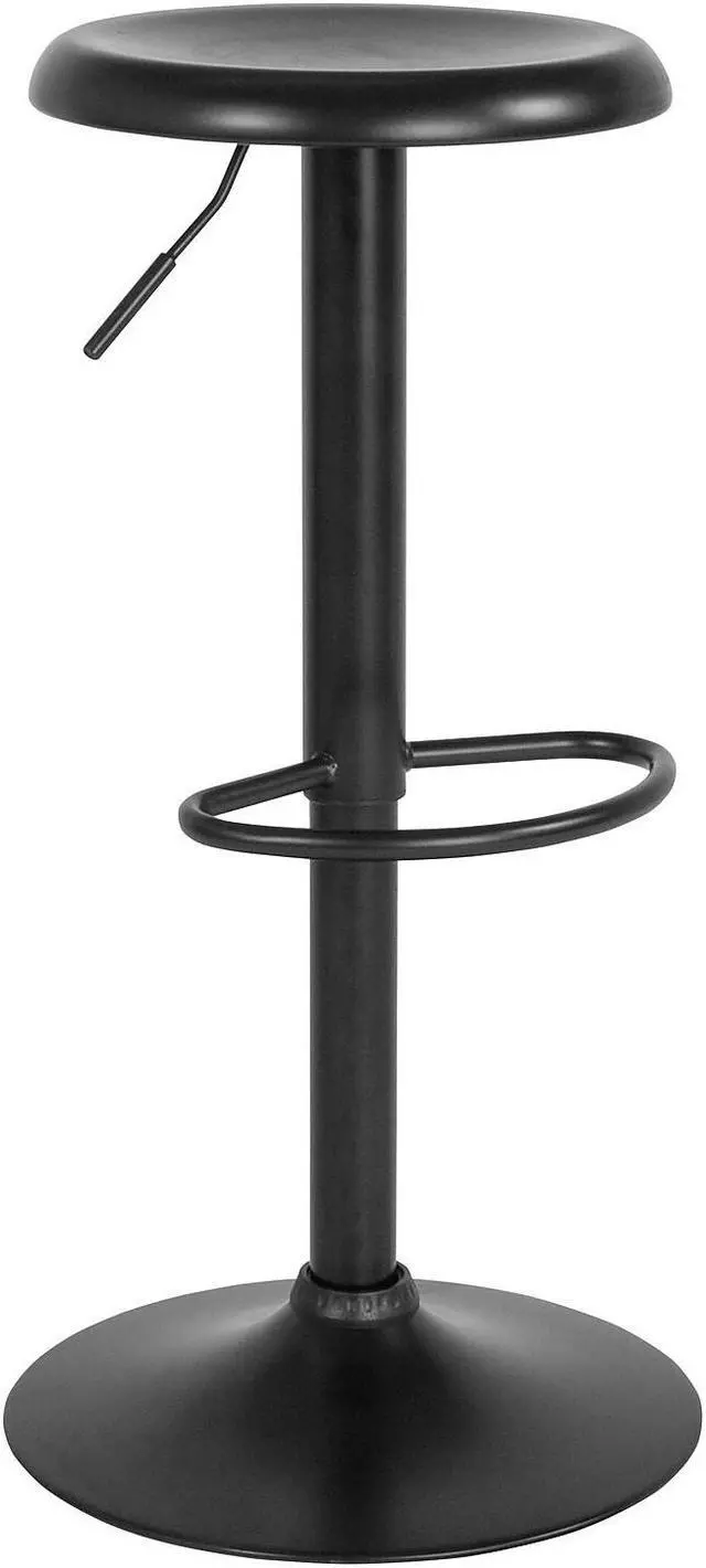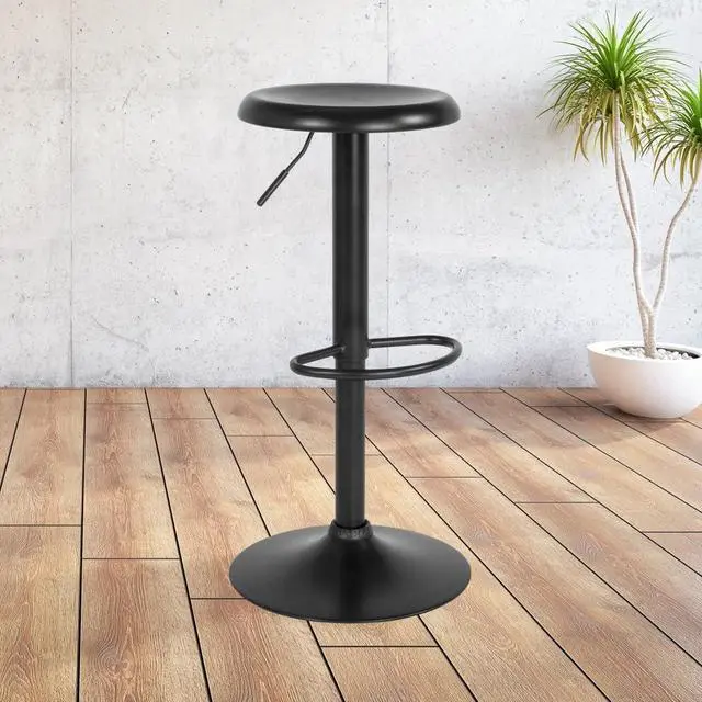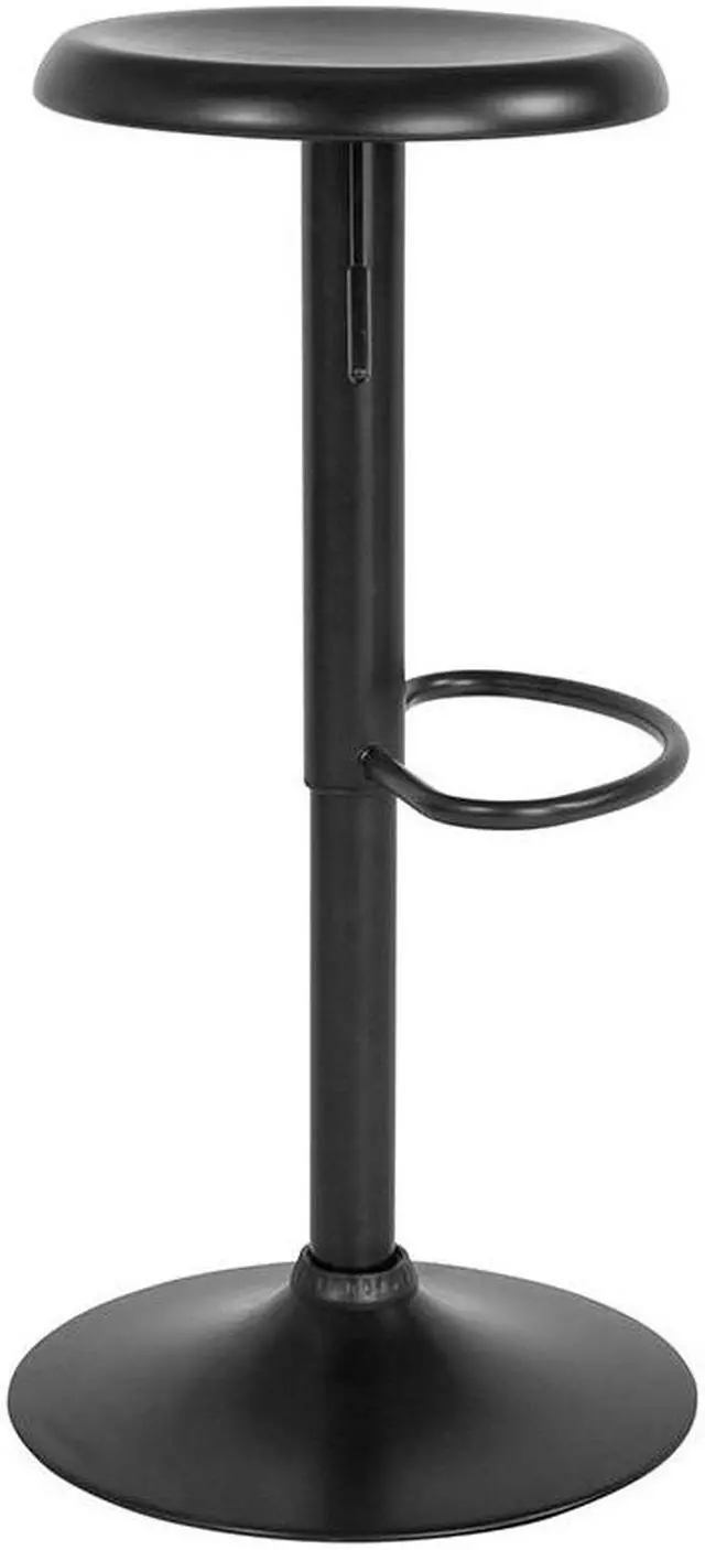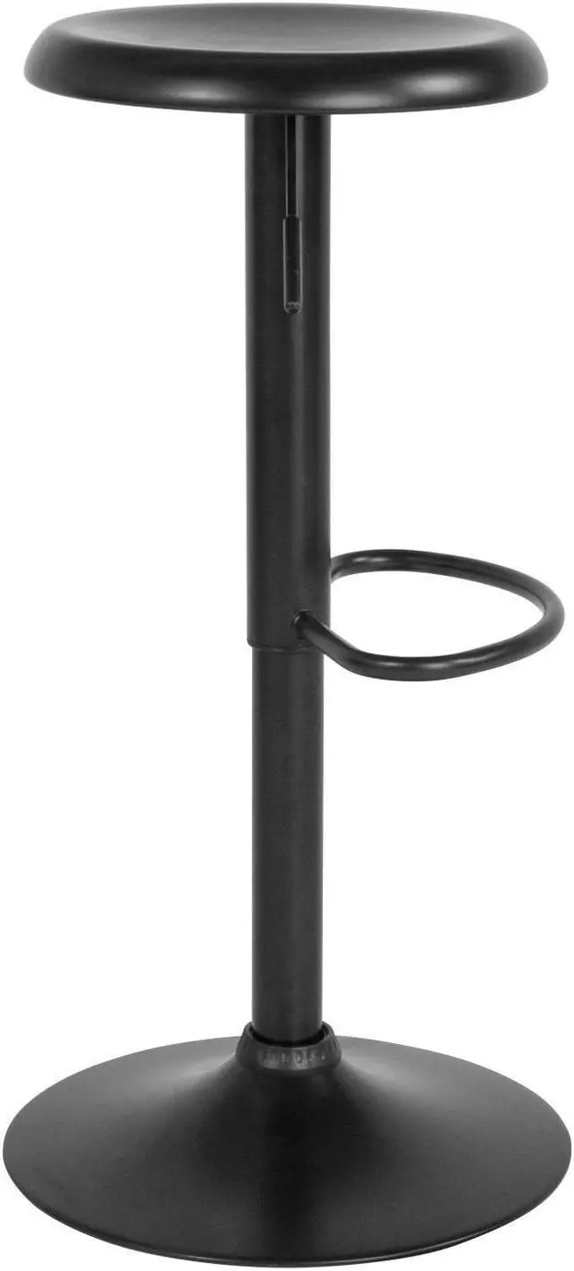This elegantly contemporary styled metal bar stool with its adjustable height and comfortably dipped seat brings the wow factor to any space you choose from the kitchen to the recreation room. The sturdy sculpted, straightforward design with the large base and footrest makes this attractive piece a functional work of art, worthy of the spotlight. This stool boasts a seamless continuity in color and craftsmanship. There is the additional security of a ring underneath to protect your flooring and provide a sense of security that this stool won't move unless you move it. If you are looking to add some pizazz this gorgeous backless barstool would be a fashionable accent, a perfect accompaniment for any space.