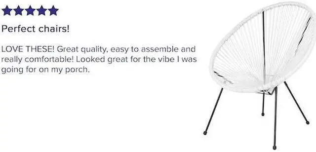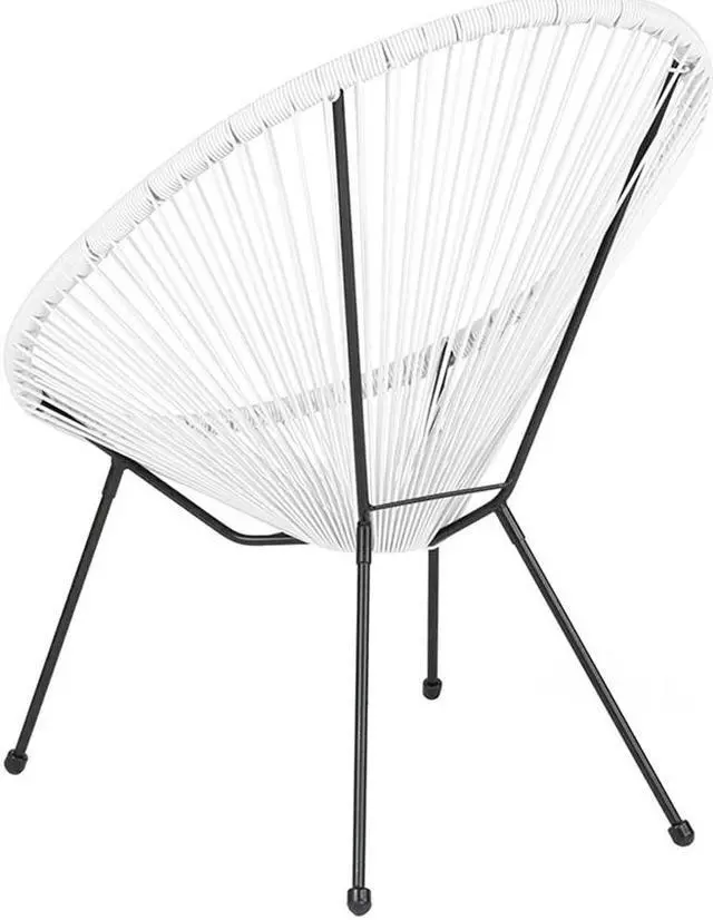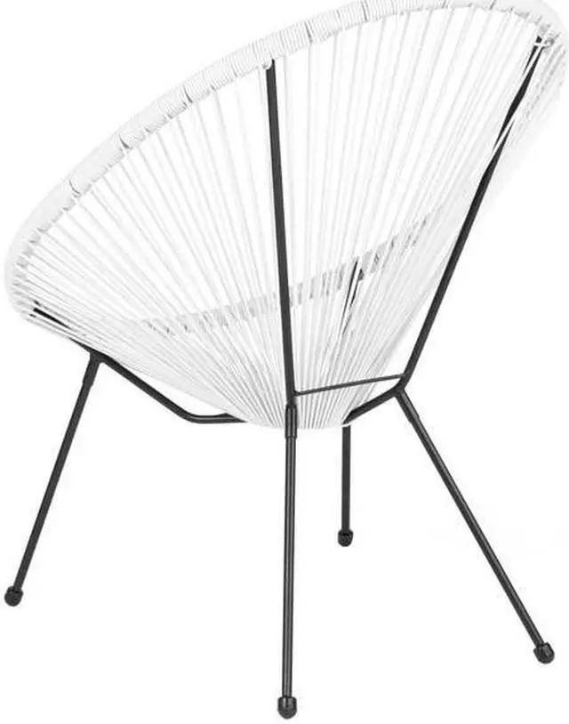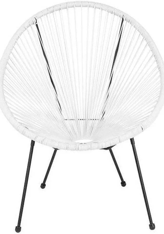 Have fun and relax with flair in this white woven basket rattan lounge chair that provides comfort with a standout, stylish appearance. The oval shaped opening beckons you to sink in while rattan and steel material provide durability to hold up throughout the years. Plastic floor glides will protect your interior floors and these chairs can be stacked for high making storage a breeze. Lounge in the comfort of your home or on the patio on a warm and sunny day and add some fresh, cool pillows for a style punch. Clean up spills with a solvent and water-based cleaner such as foam to keep this chair looking great.