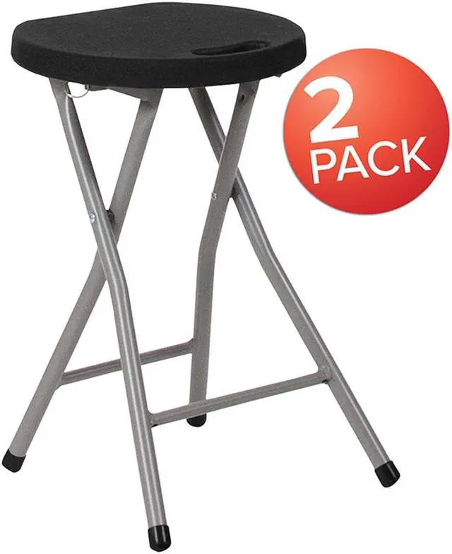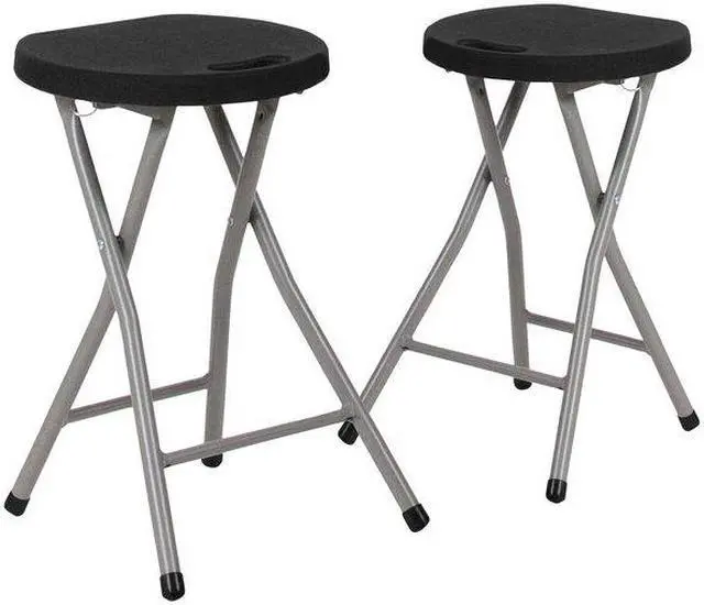 2 Pk. Foldable Stool with Black Plastic Seat and Titanium Frame