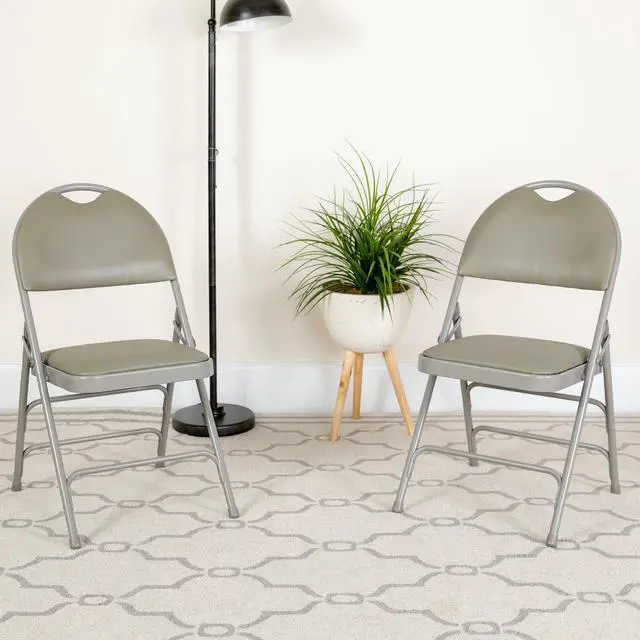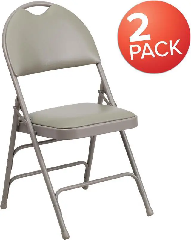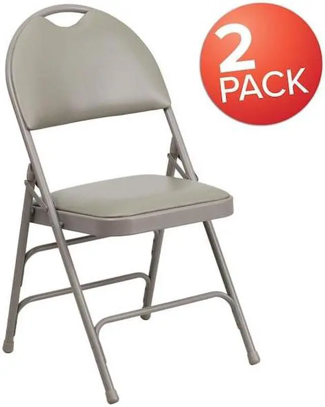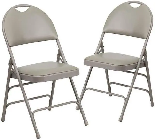 - Set of 2: Padded Metal Folding Chair - Carrying Handle Cutout.