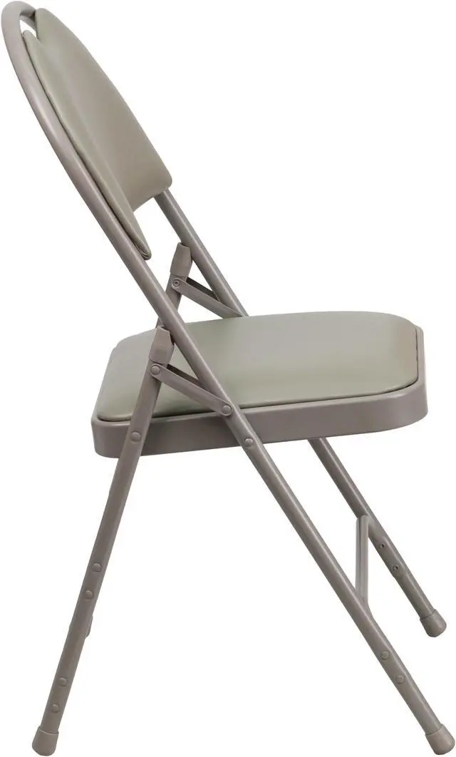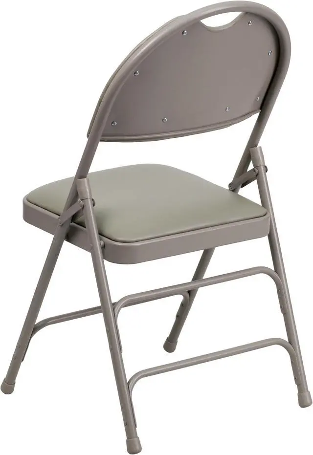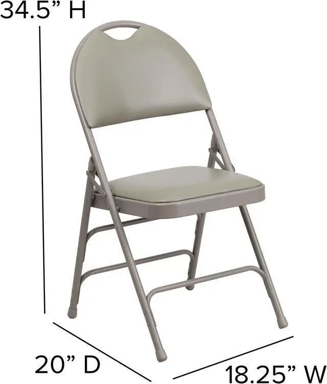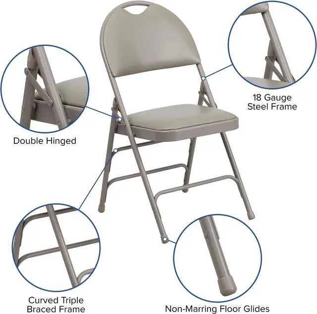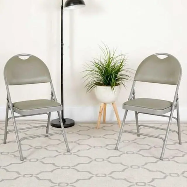Experience unmatched comfort on high back folding chairs with our ultra-premium folding chairs. Visitors won't mind coming to your place of business and having to wait when you offer padded seating that fully supports their backs. This portable chair has a carrying handle to make transporting easier. Take advantage of the good weather by hosting parties outdoors with these outdoor metal chairs. Ensure lasting use by storing indoors and protecting your frame from extreme moisture. These commercial grade metal folding chairs will withstand heavy and daily usage. Its 18-gauge curved powder coated steel frame is triple braced to support up to 300 pounds. Non-marring floor glides on the legs protect your floors by sliding smoothly when you move them. The uses are endless with multi-purpose chairs to fulfill your seating needs for your business or home. With nothing to assemble these chairs come ready to service your needs.