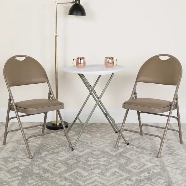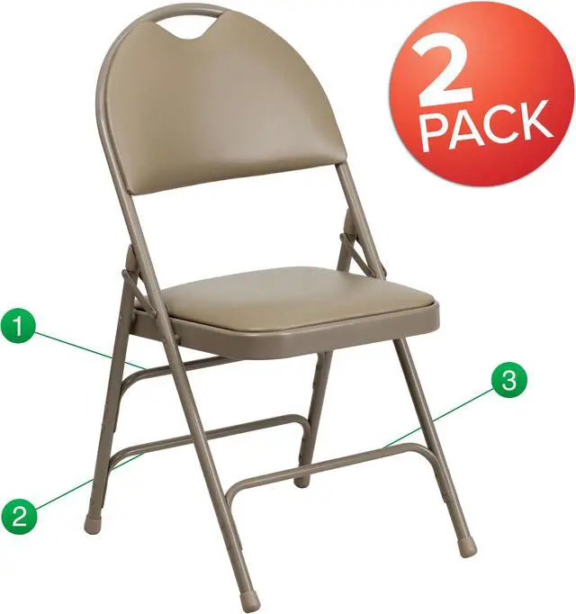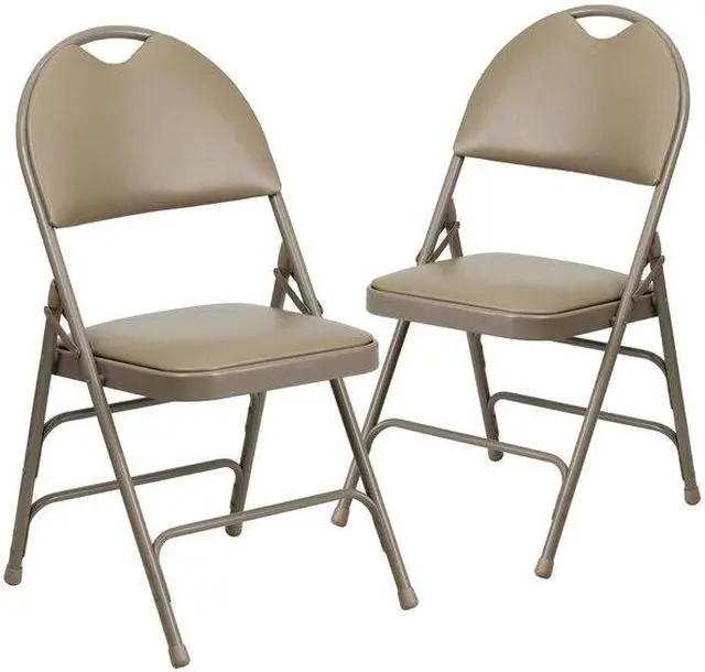 - Set of 2: Padded Metal Folding Chair - Carrying Handle Cutout.