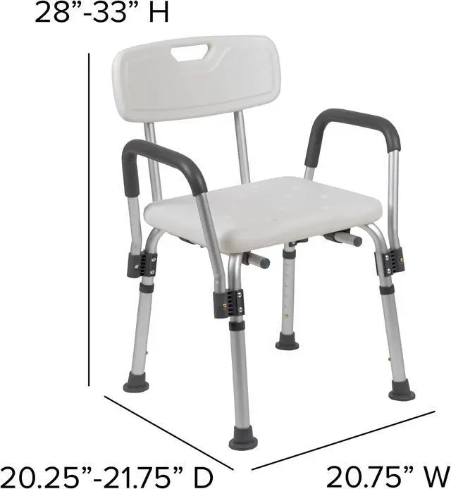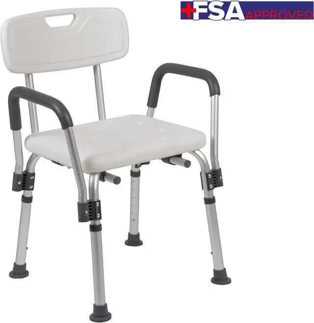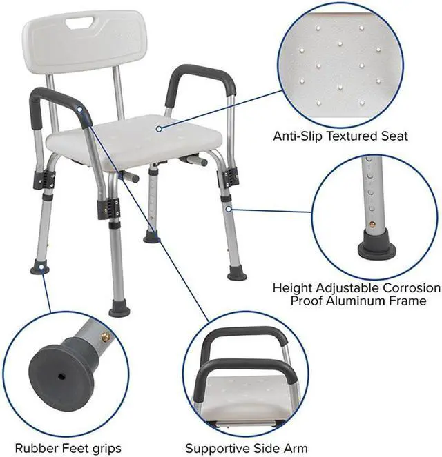 Don't let mobility issues keep you from your daily upkeep, our bath chair is designed for your safety with arms to help bear your weight. The non-slip seat includes drainage holes to drain soapy water. Minimize buildup, clean with a water based cleaner. The backrest is depth adjustable and removable to turn your bath chair into a bath stool. The medical grade shower chair has an FDA approval for use in healthcare facilities. If you live alone and need the extra assurance to reduce the risk of falling, this free-standing shower chair will bring peace of mind to you and your loved ones. Gain your independence back with a shower chair in your home that can be used in the bathtub and then for your after-shower care routine. If you've had surgery and need assistance until you're fully mobile this bathroom chair will help you on your road to recovery.