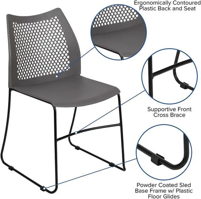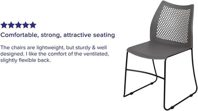 Grab the attention of visitors when they step into your meeting space and see these smart looking guest chairs. This modern beauty features a fully perforated back to provide airflow during conference hall meetings. Designed for versatility this chair is designed for reception areas, school functions, break rooms, cafeterias, event spaces and express emission testing locations where customers must get out their vehicle. Always be ready for guests by having several plastic guest chairs tucked away in your home. If you work in grungy environments and need a chair that is easy to clean plastic stack chairs are ideal.