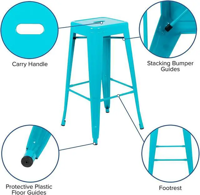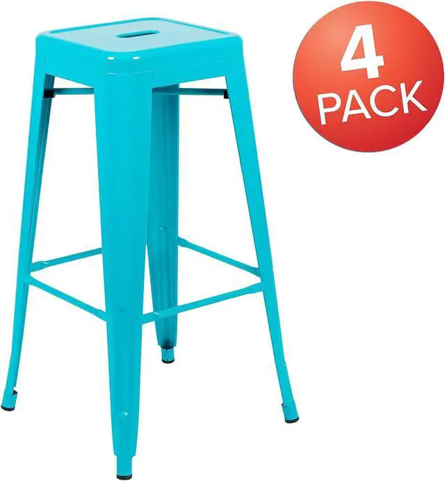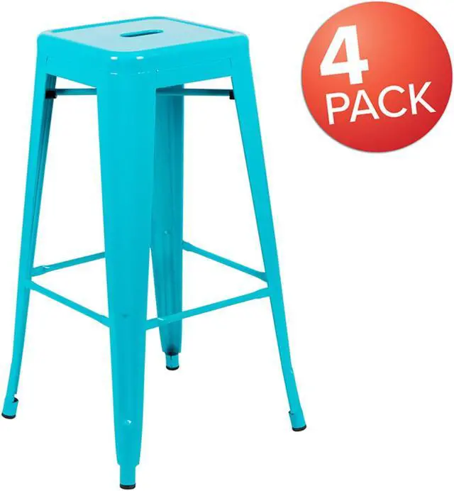 Cierra 30" High Metal Indoor Bar Stool in Teal - Stackable Set of 4