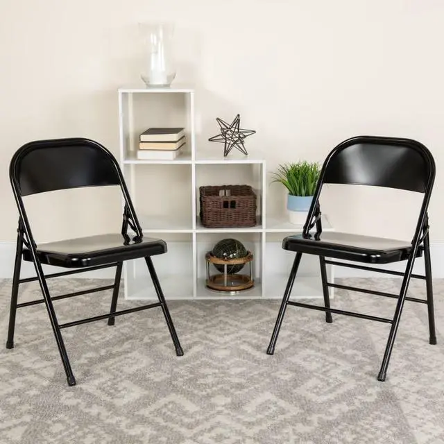 Commercial-grade metal folding chairs are designed to be lightweight but durable. This product is engineered and built with premium materials and boasts riveted steel components that will withstand heavy duty use for event, business, and home usage. These metal folding chairs feature premium 18 gauge curved steel frames and double-hinged frames for worry-free seating. With a variety of vibrant color options, you can choose what would best pair with your event needs. This is a commercial-grade on-demand seating solution convenient for weddings, school functions, barbecues, game nights, and catering events.