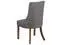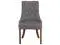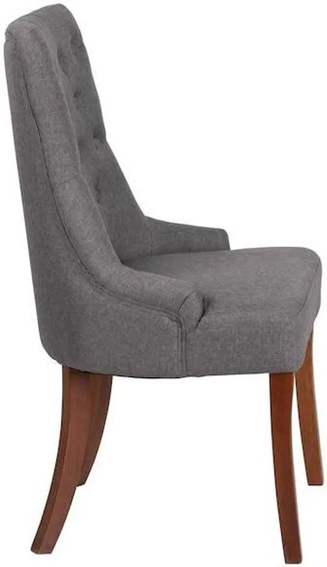 Versatile chair adapts in contemporary and traditional settings. Button tufted upholstery and wood legs with protective floor glides.