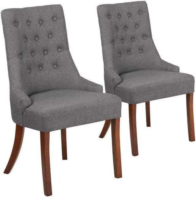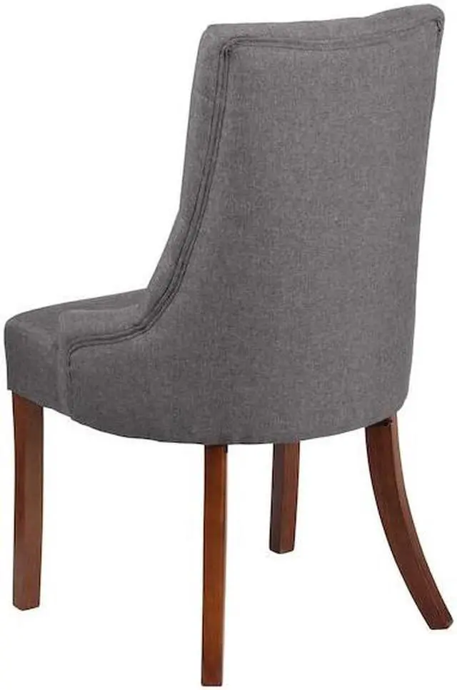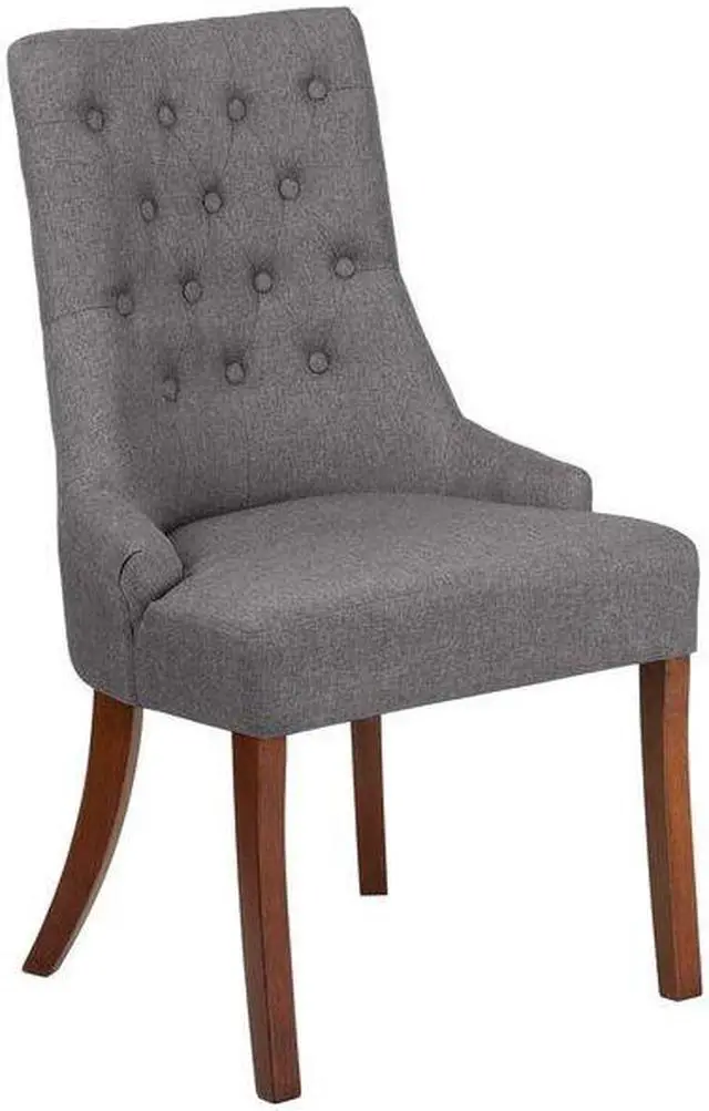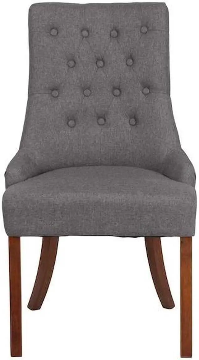This versatile chair can adapt in contemporary and traditional settings. This chair features button tufted upholstery and wood legs with protective floor glides. Designed for many uses around the home or in an office setting.