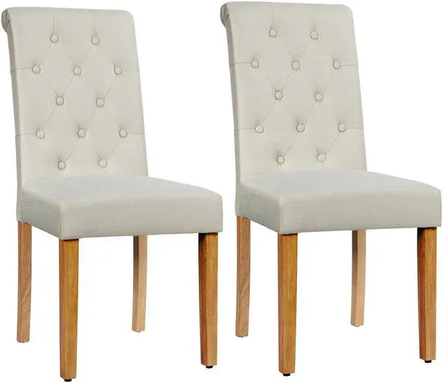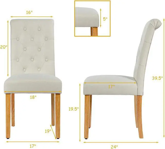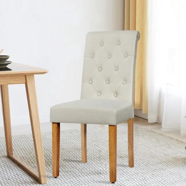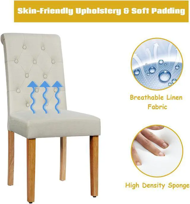 The key to perfectly complement your dining table or enjoy every meal with great relaxation is to have our comfortable upholstered dining chair. The chair filled with elastic sponge shall improve the level of comfortableness. Linen fabric can not only bring superior breathability in touching but also expands life span due to good durability. Considering that you may get tired of sitting for long time, it adopts higher curved backrest to relieve your back fatigue. Sturdy rubber wood, solid connection and adjustable foot pads result in stable structure to avoid wobbling and maximize satisfaction. No need to worry about assembly since simple enough installation will free you from such concern. Take the chair home and let it serve your family while impressing your guest.