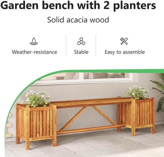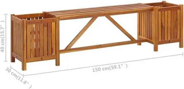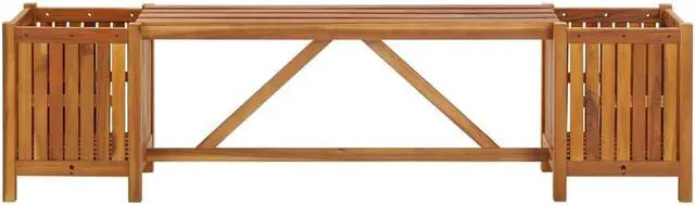 Add a welcoming touch to any patio, deck or entertaining area with our solid wood patio bench! Finished with a light oil coating, the bench is made of durable acacia hardwood, which is characterized by excellent weather-resistance. Therefore, our bench is extremely suitable for outdoor use. The two side planter boxes serve as great places to grow a variety of flowers or plants and will make a great addition to your garden. Take a load off on this lovely wooden bench with planter boxes!