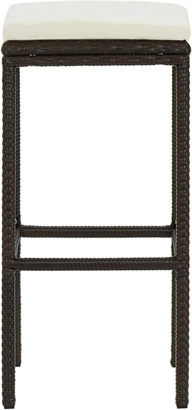 The bar chair has a strong construction of steel frame, making it stable. Thanks to the weather-resistant and lightweight PE rattan, this counter stool is durable and easy to move. The seat cushion and built-in footrest also add additional seating comfort for the stool. The easy-to-clean polyester cushion cover with concealed zipper can be removed and washed.