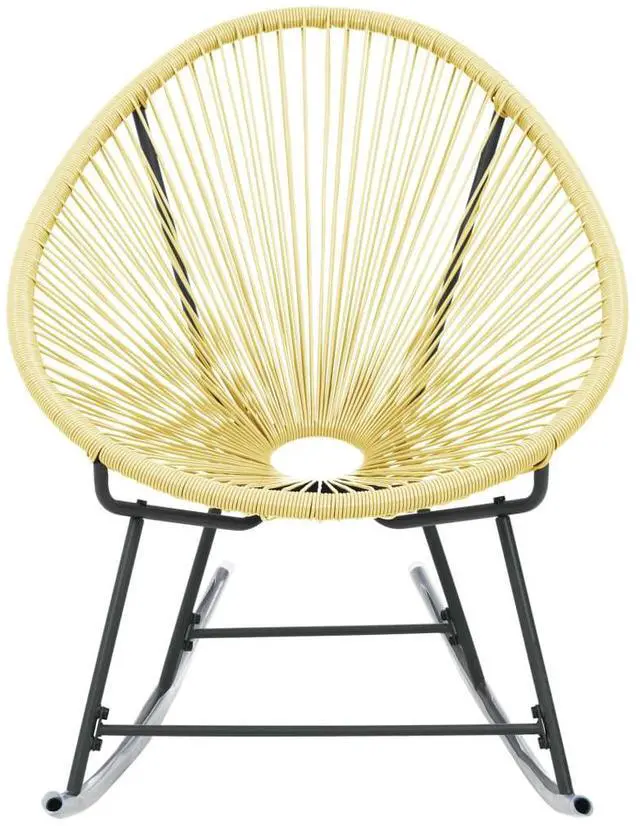 Thanks to the poly rattan seating area, the moon chair is water resistant and easy to clean. The powder-coated steel frame ensures this piece of furniture stable and durable and gives its unique modern style. This outdoor rocking chair will suit any decor.