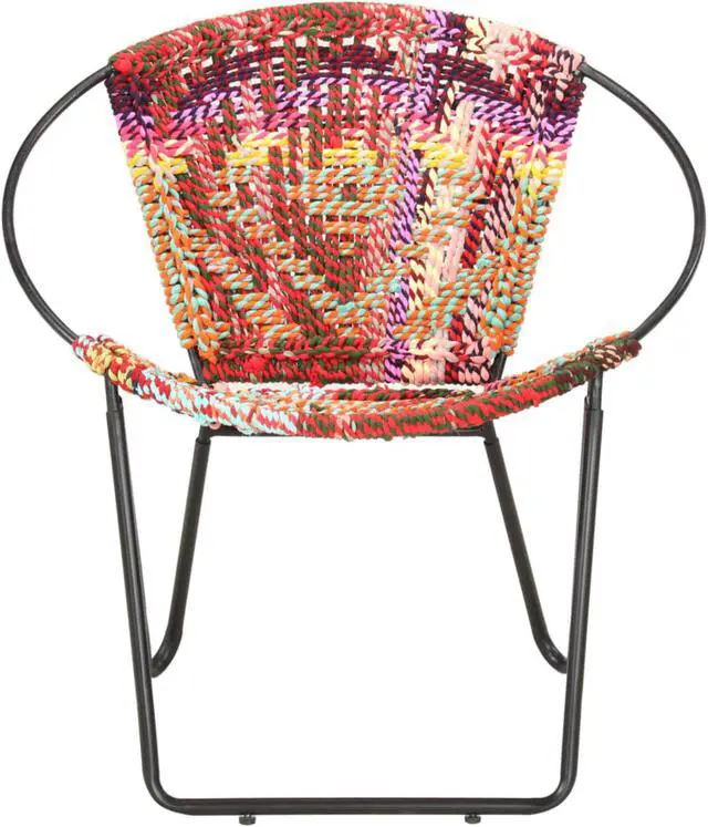 Experience complete relaxation after your busy day with our classic chindi circle chair. This chair features an ergonomic design to ensure sufficient support to your body and providing the utmost comfort. The handwoven striped cotton upholstery is soft to touch, and the strong steel frame with powder coating makes the chair stable.