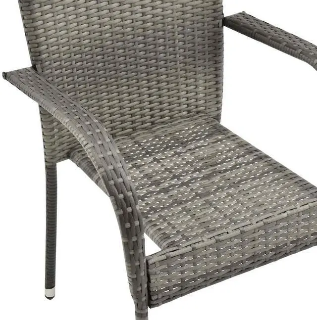 Add a touch of contemporary style to your garden, patio or terrace with our poly rattan dining chairs! These stacking patio chairs are made of water-resistant PE rattan, making them hardwearing, easy to clean, and suitable for daily outdoor use. The outdoor chairs have a powder-coated steel frame, which makes them sturdy and stable. The outdoor chairs are lightweight and can be stacked to save space when not in use.