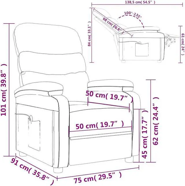 Our massage chair features reclining and heating function. This adjustable TV chair is an excellent seat for your living room. The electric massage recliner is made of faux leather, filling foam and iron frame, making it stable and soft to be seated. The recliner has 6 massage points for the head, neck, back and legs. These massage points send out relaxing vibrations. The included USB allows you to pick different massage programs. With one push of the button, the seat can also be heated for an added relaxing feeling. The backrest can be adjusted backwards, while the footrest can be adjusted upwards. This position makes it possible for you to lie down comfortably. This massage recliner is also equipped with the side pocket for the remote control. Experience a pleasant, relaxing time with our massage reclining chair!