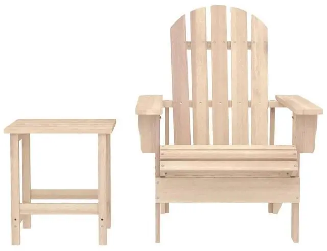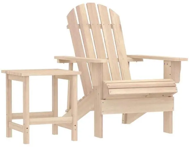Relax and take a load off in the garden or on the patio with this trendy and comfortable Adirondack chair with table! This garden chair with table, crafted from solid fir wood, features a sturdy frame and is stable, making it easy to maintain and weather resistant. The table allows you to place your phone, sunglasses, drink and other small items. The ergonomically designed structure also ensures optimal comfort. With an elegant and timeless design, it will be a practical and classic addition to your outdoor living space.