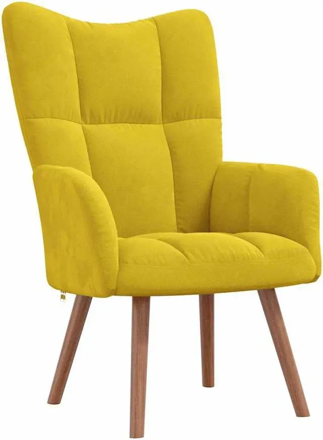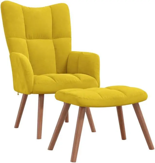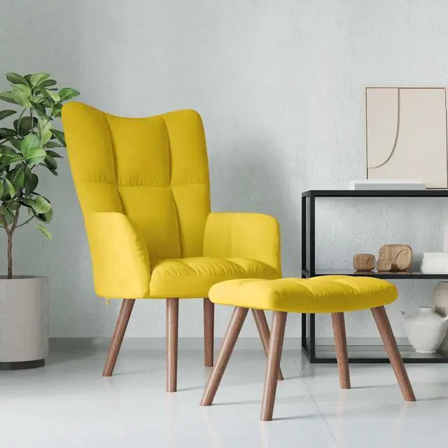 This armchair, with some blocks on its backrest, is aesthetically pleasing. Thanks to its thickly padded foam upholstered in soft-to-touch velvet, you can enjoy optimal comfort in your sitting time. Supported by steel frame and wooden legs, the relax chair with a stool is stable and durable.