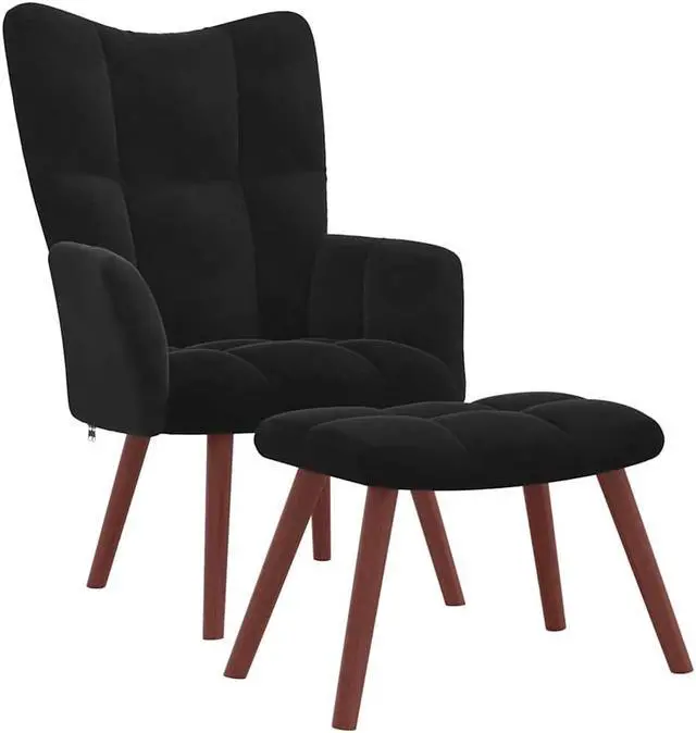 This armchair, with some blocks on its backrest, is aesthetically pleasing. Thanks to its thickly padded foam upholstered in soft-to-touch velvet, you can enjoy optimal comfort in your sitting time. Supported by steel frame and wooden legs, the relax chair with a stool is stable and durable.