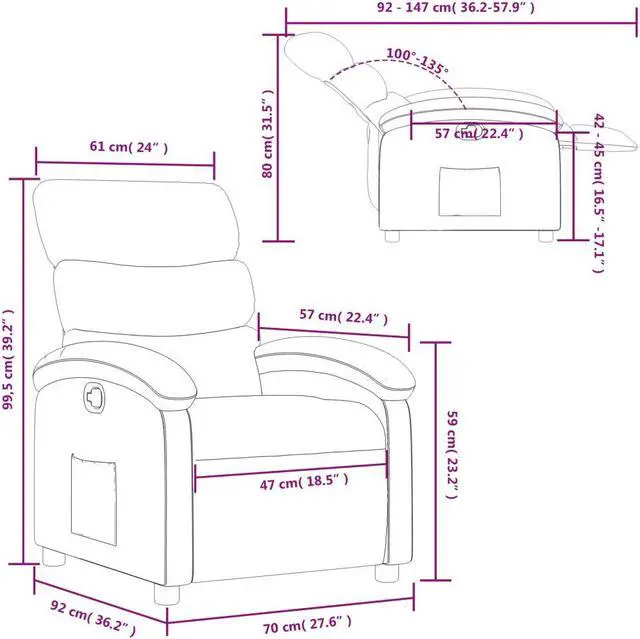 Solid and stable frame: The frame made of wood and metal provides a strong structure and stability. This reclining armchair is comfortable and durable.