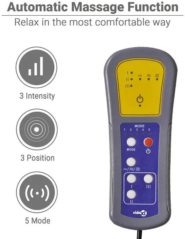 Vibration function: The featured 6 massage points let you experience a better-targeted massage. Additionally, the included hand control allows you to pick different massage programs. The massage function is powered by the USB connector, but the certified 5V USB power source is not included.