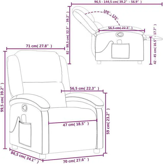 Solid and stable frame: The frame made of wood and metal provides a strong structure and stability. This reclining armchair is comfortable and durable.