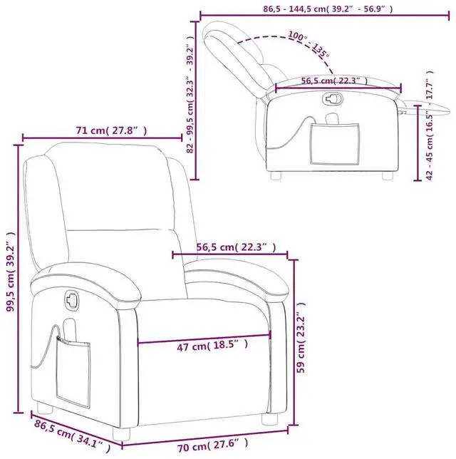 Solid and stable frame: The frame made of wood and metal provides a strong structure and stability. This reclining armchair is comfortable and durable.