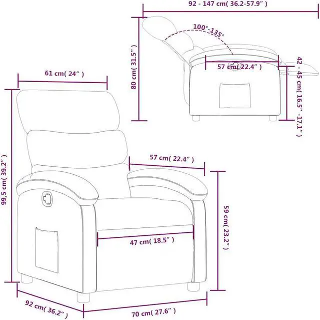 Solid and stable frame: The frame made of wood and metal provides a strong structure and stability. This reclining armchair is comfortable and durable.