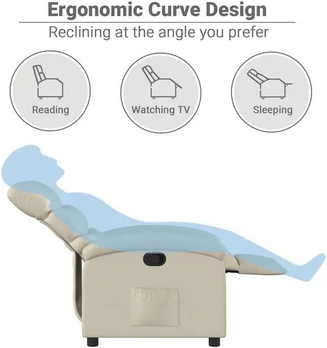 Manual reclining function: This reclining chair has a handle on the right side. You can manually adjust the footrest and the backrest to any position as per your comfort with a simple pull of the handle. This feature allows for a maximum tilt of 135 degrees. Additionally, the backrest can go quickly back to the original place with an easy pull of the handle.
