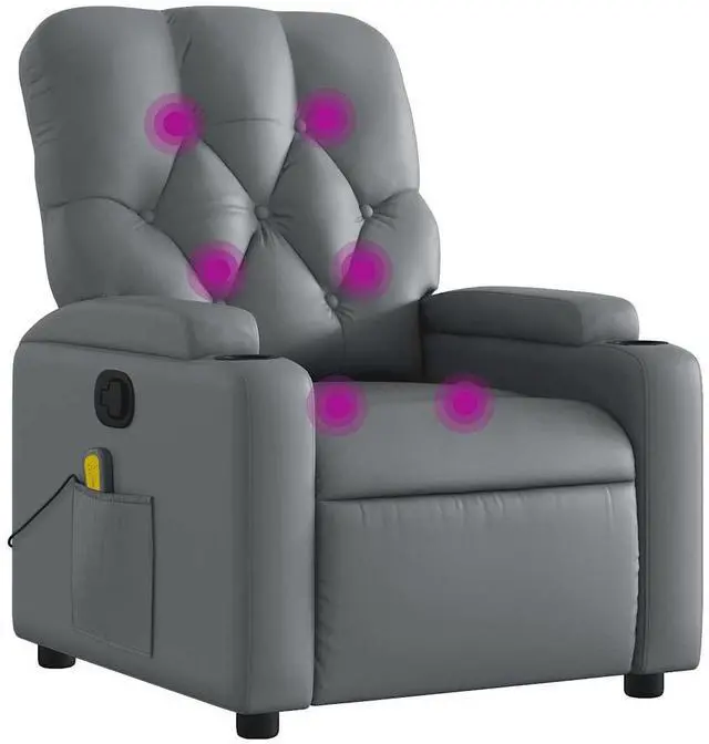 vidaXL Leather Massage Recliner Chair for Living Room, Home Theater, 6-Point Vibration Massage, Adjustable Back & Footrest, Cup Holders, Gray
