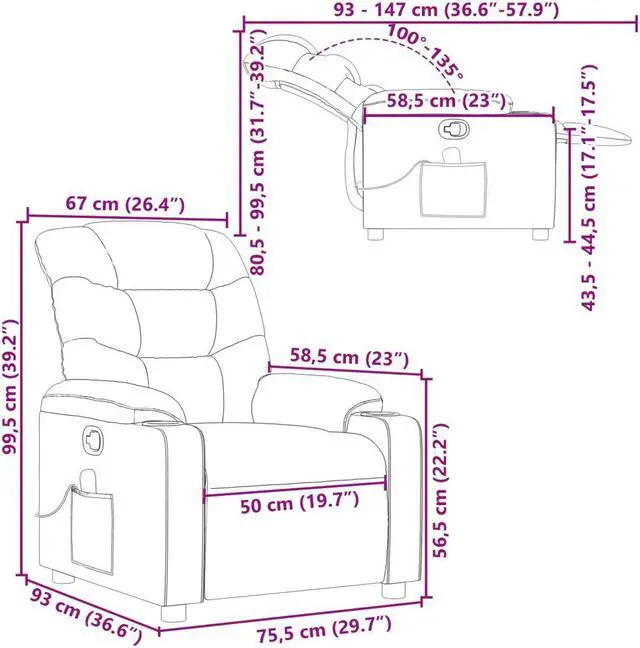 Solid and stable frame: The frame made of wood and metal provides a strong structure and stability. This reclining armchair is comfortable and durable.