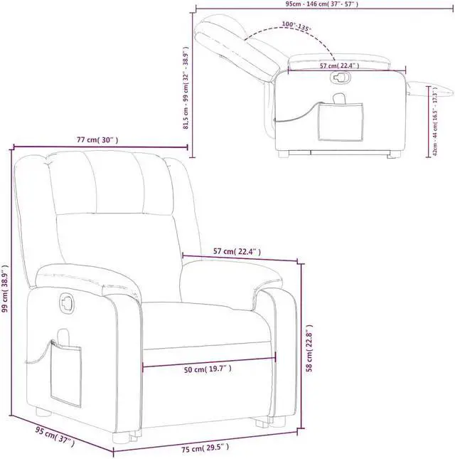Solid and stable frame: The frame made of wood and metal provides a strong structure and stability. This reclining armchair is comfortable and durable.
