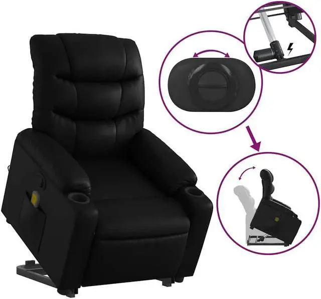 This Stand Up Massage Recliner Chair is all about relaxation, striking a perfect balance between comfort and utility. Its trendy black faux leather fits right in with any living room style, creating a chill spot for unwinding or enjoying some TV. The chair's sharp design comes with clean lines and a silky smooth finish, making it ideal for everyday use and a stylish centerpiece in any relaxation area.