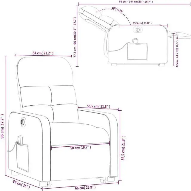 Solid and stable frame: The frame made of wood and metal provides a strong structure and stability. This reclining armchair is comfortable and durable.