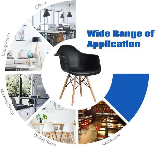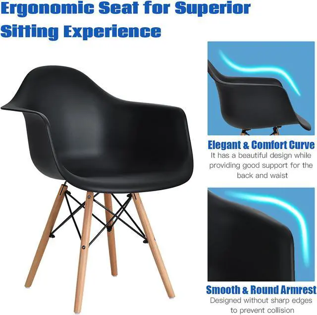 Our mid-century arm chairs will be the indispensable part of your home. This set of 2 dining chairs features curved back and armrest. They well fit the curve of human body, helping relieve your fatigue of a days hard work. The rounded seat edge will reduce pressure on your legs. Supported by high-quality beech wood legs with black x-shaped iron wires, these side chairs are sturdy and sturdy for safety use. The white molded seat shells will fit in well with any classic or modern room layout, bringing a touch of minimalism to your room decor. Refresh your home decor with this set of 2 modern chairs.