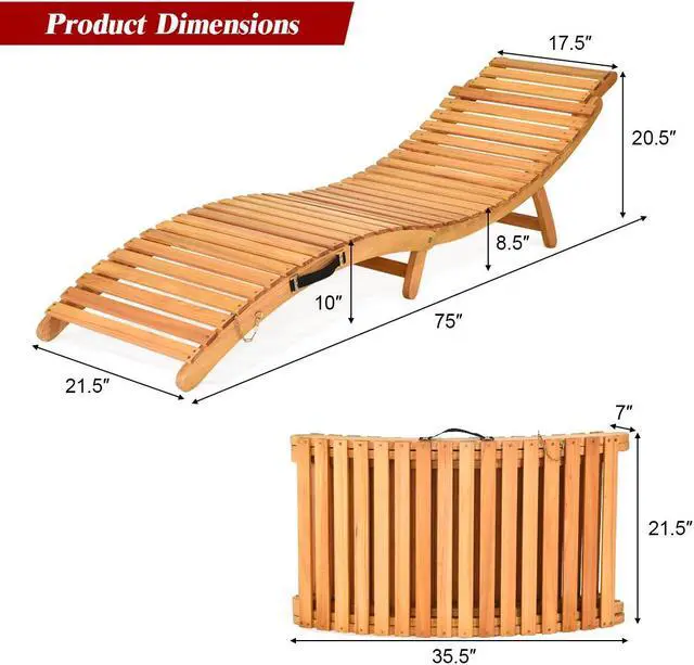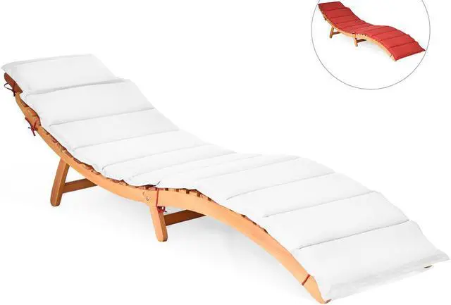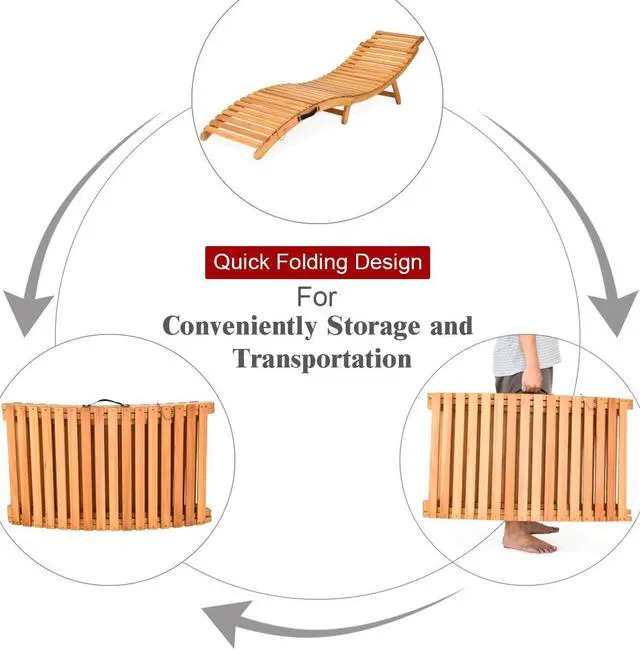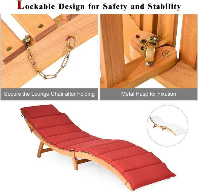 This is our folding Eucalyptus lounge chair which is composed of solid wood structure and comfortable sponge cushion. The chaise chair is tightly screwed, which provides you with satisfactory load-bearing capacity and stability. And the weather-resistant characteristic ensures that our lounge chair can withstand the test of outdoor use. Natural wood frame and two-color cushion add unique charm to your outdoor environment. It's worth mentioning that our lounge chair can be quickly folded when not in use for easy storage. Featuring with a thickened handle, you can carry this chair to different places. The lounge chair is an ideal choice for poolside, patio, porch and seaside.
