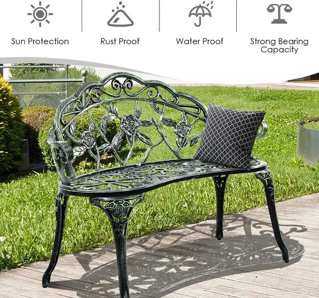 This is our sturdy and beautiful Patio Garden Bench, which will be a great addition to garden or make a completion for your path. It is of cast construction and antique rose style.It is perfect to sit and rest to enjoy your great outdoors.