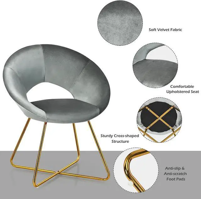 The chair is made of high quality metal legs and a sturdy cross-shaped frame that can support up to 300 pounds. Designed by ergonomics, this chair can perfectly fit the human body curve to alleviate fatigue. Curved backrest, comfortable armrests and padded seats make you sit comfortably and relax. In addition, the soft velvet cover with good quality will give you an additional comfortable experience. Our leisure chair is simple and modern, suitable for living room, dining room, office and other places. Don't hesitate to add it to your cart!