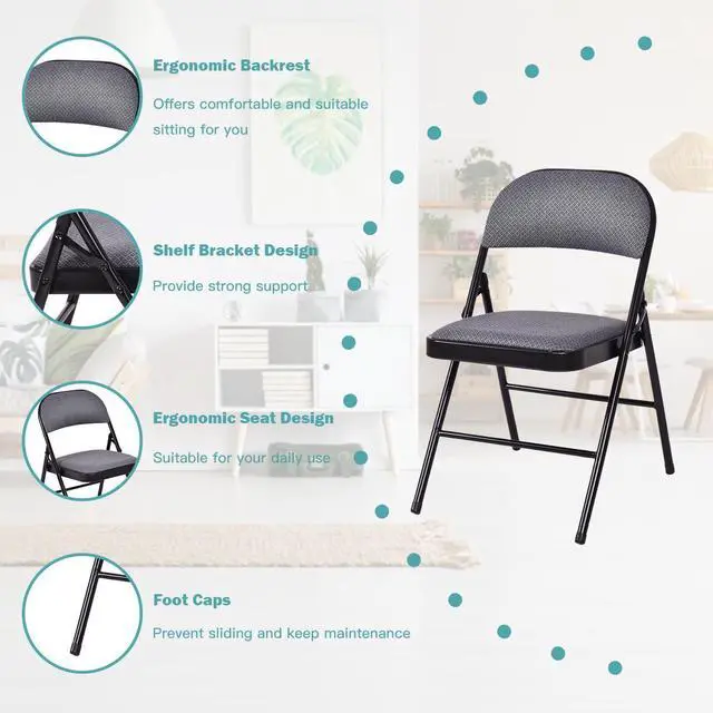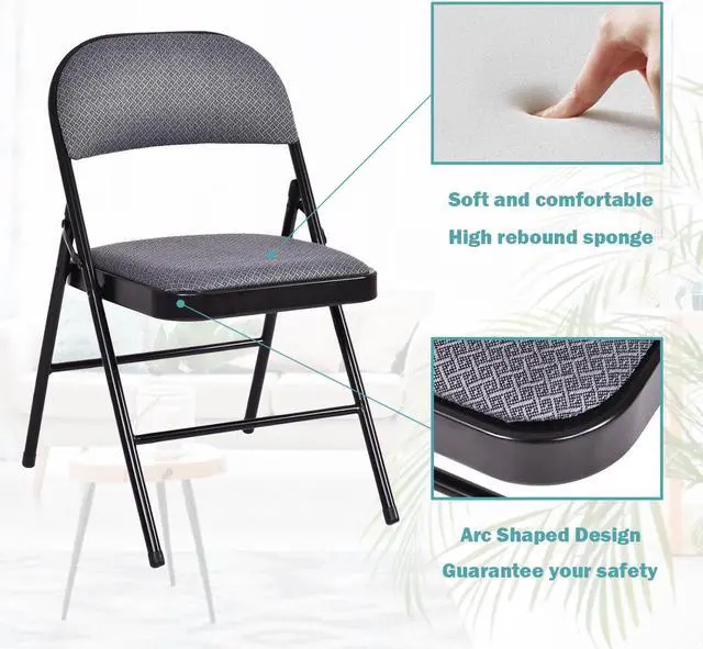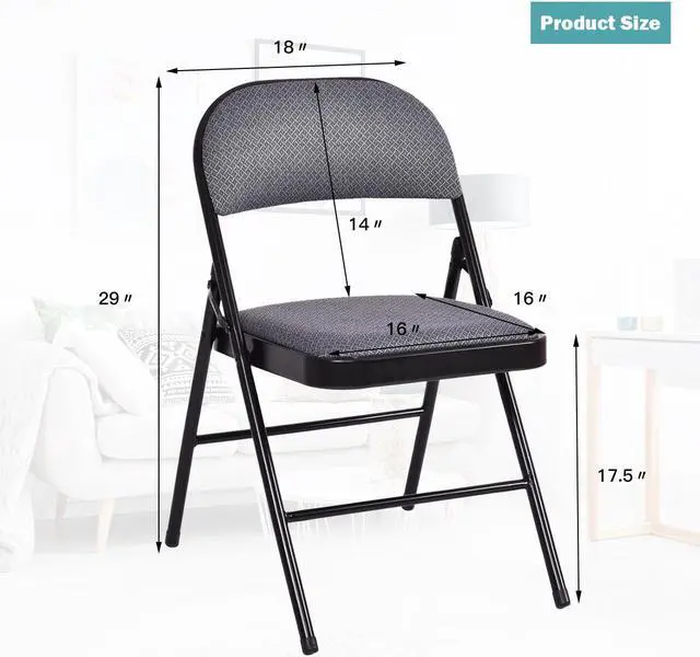 This is our 4-piece folding chairs set, which is lightweight and suitable for many occasions such as parties and events. Featuring high quality powder-coated steel frame, these chairs will assure you comfort and reliability. The fabric seat and backrest are filled with high density sponge, making it more comfortable during a long time meeting. Its foldable construction makes it easy to store and carry. They're almost suitable for anywhere, home, garden, office etc. 4 in 1 set at great price. Do not hesitate to buy it now!