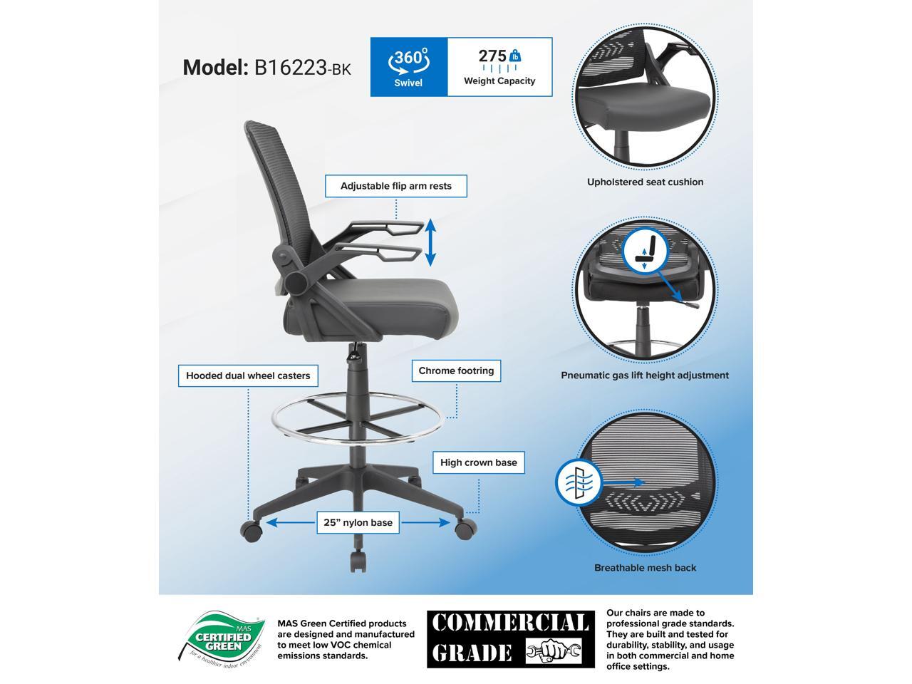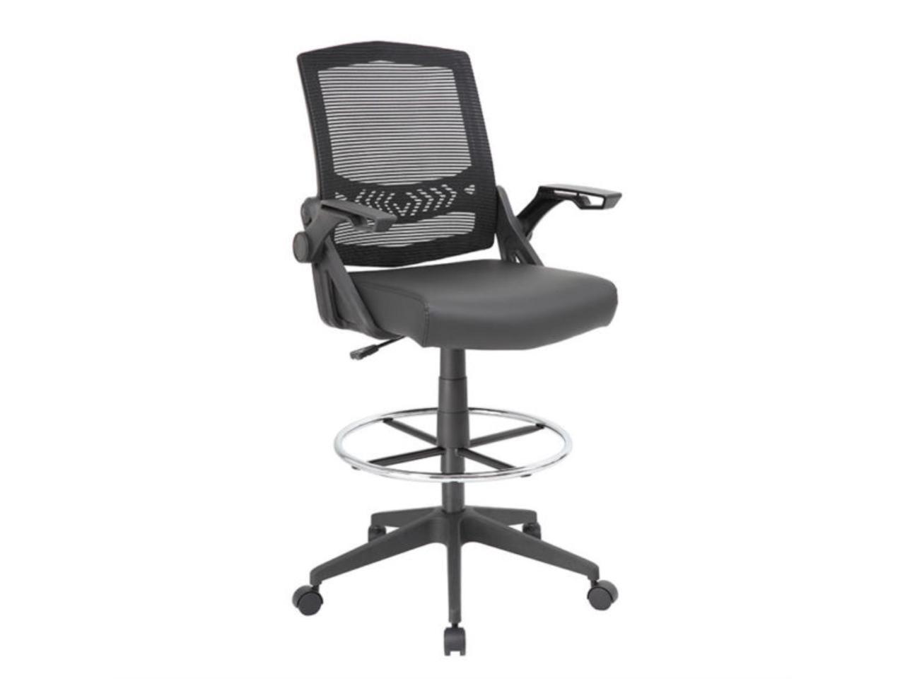 Boss Black Flip Arm Mesh Drafting Stool